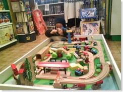 á f östudaginn kíktum við í Dótakassann og lékum okkur smá stund í lestunum. Okkur finnst svo gaman að kíkja þangað og sjá hvað e í boði þann daginn. Og núna er mega útsala þar og náðum við lest á 990 kr sem eru eins og þær sem hann er að safna - Tommi lest sem sagt - rosa gaman !!!